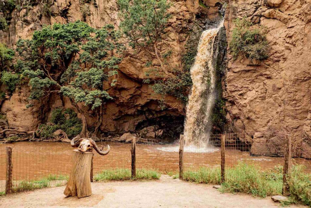 A scenic waterfall inside the park.